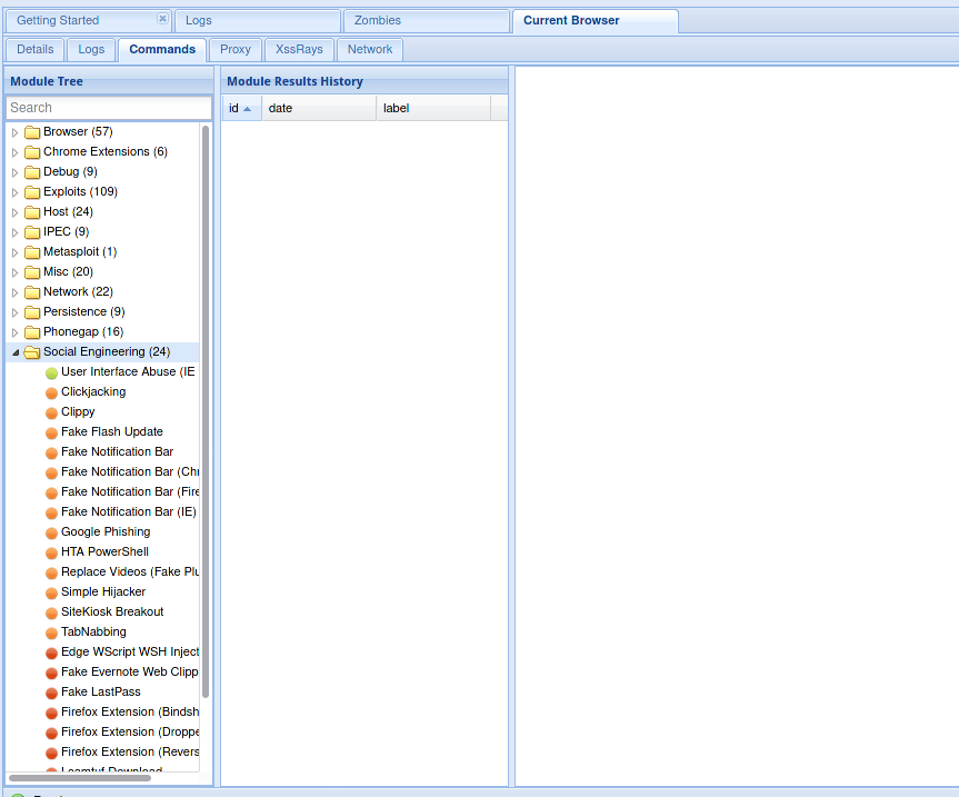 - 这个就是我们的 beef 操作页面了打开以后会有个登录页面,像封面那样,登录进去之后是这样的。