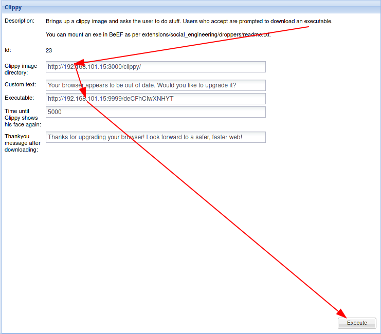 先把默认的 Clippy image directory 地址改成攻击机的地址,再把这个链接 http://192.168.101.15:9999/deCFhCIwXNHYT 填入 Executable 这一栏里面。